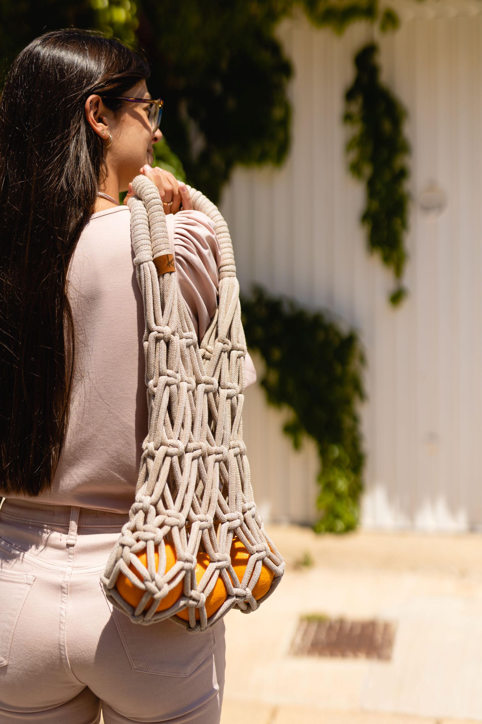 DESCRIPCIÓN: Bolso red calada, de gran capacidad para llevar desde un libro hasta una carpeta más grande. Muy resistente suave y ligero de peso.